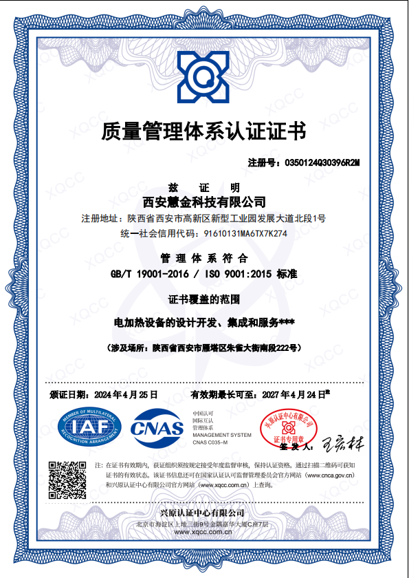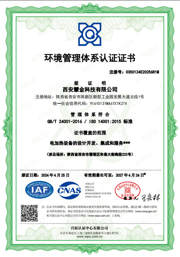西安慧金科技有限公司(原西安中冶新材料有限公司现改名称,以下简称我公司)由中冶赛迪集团有限公司、西安电炉研究所有限公司、西安江怀科技有限公司共同出资组建,是一家央企控股的混合所有制企业,成立于 2015年11月,注册资本1500万元,是一家专注于工业电加热系统成套、新材料生产的科技创新型企业。